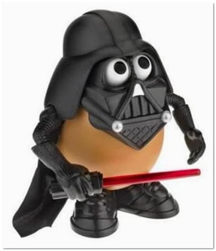 Be it a long time ago, in a galaxy far, far away or right here at home in the 21st century, Mr. Potato Head never fails to reinvent himself. For generations this spectacular spud has wowed us all with his ability to keep up with the times. Now he throws us all for a loop once again to reveal that even he has a Dark Side, taking up the role of the most menacing movie villains of all times: Darth Vader. Donning the trademark black helmet, mask and cape, our favorite tuber wields the infamous red lightsaber to become his own Darth Tater. Of course you’ll still find all the classic accessories like the googly eyes, red nose, and silly tongue we’ve come to love but now with an added twist of Star Wars. As always, all the pieces still fit away inside his body for easy storage.--Chip Quinn